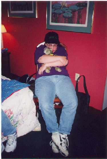 Sunday morning started out early. No, that's exactly what I meant to say...heh, let me explain. After getting to sleep sometime after 1:00am, then tossing & turning from a sore foot, heat, strange bed, etc (not to mention semi-hourly wakeups), I was awakened at 7:30am by a knock at the door. Now, don't get me wrong, I AM a morning person (to the dismay of my coworkers), but not when I've been woken up after not much sleep. Don thought she'd heard me out and about earlier, and was a little shocked when she got to see her first view of me in "RAPH" mode as I grumpily greeted her at the door. <G>