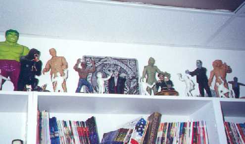 nice set of shelves, containing books, comics...a cd rack..and on the top shelf were loose action figures (and