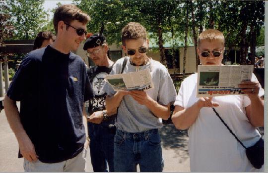 Huntin for the Bonobos are we???? hee hee hee Here we have egg (being the onlooker, of course) not really helping but pretending he is helping the others find the Gorillas and monkeys and apes for lil ole Kalest who just HAD to wake everyone up bright and early to go searching for them at the Columbus Zoo (who by the way is taking the pic). In the center we have Native (and what a mighty map man he is) and on the right we have Just4fun (such a trooper, i stole her from her breakfast to come monkey huntin with me) *hee hee* And in the background we have one of the tiki's favorite couples: Dragonslaire and the gaelic wolf (who think we are all nuts; but they are still lookin at a map) lol | ||||||||||||||||||