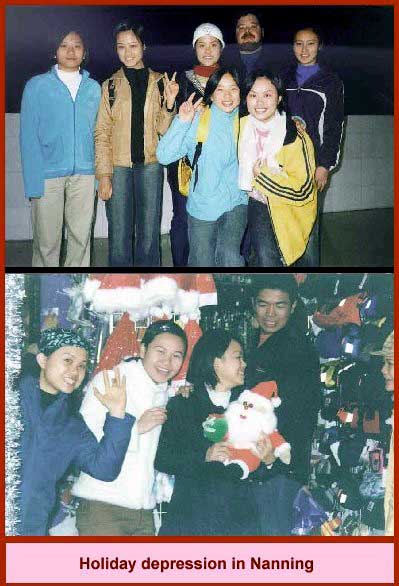 | ( INTRO AND APOLOGIES ) | ( FRIENDLY SKIES ) | ( HONG KONG ) | ( MY HOTEL ) | ( STREETS OF NANNING ) | ( BATTLE OF YILING CAVE ) | ( CHINESE TV ) | ( MADE IN CHINA ) | ( DINNER IN CHINA ) | ( CHINESE AS HOSTS ) | ( DO & ME CHRISTMAS DINNER ) | ( THE CAPITALIST PIG ) | ( HEAD & SHOULDERS ) | ( RURAL LIFE ) | ( NANNING COLLEGE ) | ( SANITATION ) | ( THE WHEEL TURNS ) | ( HEADING HOME ) |