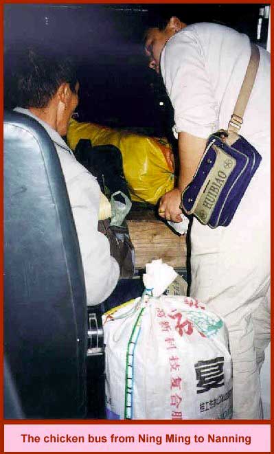 This was the roughest ride I have ever taken – anywhere. I was literally bounced clear of the seat on the larger bumps. I stood for the latter ½ of the trip because my butt couldn’t take anymore. This part of the journey saw my head pounded against the roof when we hit the big ones - and they all seemed to be big ones. Most importantly, we made it to Nanning that evening, albeit with head – and butt aches. The whole day's adventure for the 3 of us cost about 380 RMB, about $47.50 US.
