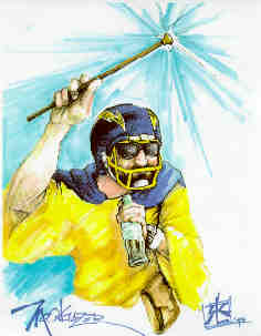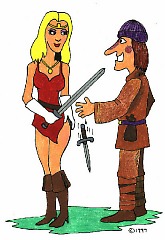 Sungazer was the reincarnation of Moongazer, a Wizard of mine in a long ago AD&D campaign. Moongazer was certainly a character in line with the type of character you would expect to find in a Finieous Fingers comic strip (which appeared in the very early Dragon Magazines). Moongazer was always an avid San Diego Chargers fan, which confused his friends because no one else had ever heard of them or even of football or the NFL, but this was somewhat understandable because Moongazer was "not from around here". At one time Moongazer was cursed by the gods and was forced to don the colors of the hated evil Oakland Raiders(Black and Silver)including their helmet. Eventually he earned back the favor of the gods and had his helmet transformed into a Charger helmet, and his colors returned to Blue and Gold. Moongazer also had an inexhaustable supply of what he called the elixer of life, or sometimes Coke-a-Cola, with a chilled bottle appearing in his hands whenever he gesticulated quickly. Unfortunately this slowed down his spell casting at times, but hey, you have to take the bad with the good. Sadly, the Great and Mighty Moongazer was eventually laid low and went to his unjust rewards, but his distraught friends could not let him rest, and thus set about to reincarnate him. They succeeded, but not perfectly, having spent his time in death in black limbo, Moongazer when restored to life became a dreaded "Day Person", and thus took the name Sungazer.
