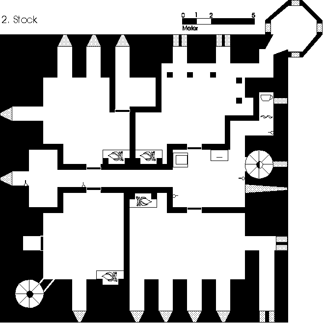 In der S�dwestecke des Turms f�hrt eine alte Geheimtreppe hinunter. Durch sie kann man das Labor von Thoullas erreichen, sowie den unteren Keller.