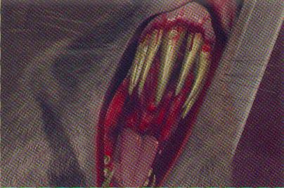 faces covered in the blood of other victims.