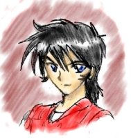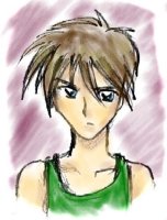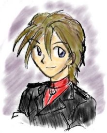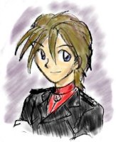 From the Gundam Wing series, Heero Yuy pilots the Gundam Wing Zero. He takes his work seriously, and may go to the point of suicide to complete his missions. He is nothing like Duo personality-wise, and tends to laugh maniacally after he blows stuff up (hehe- ookay, might wanna re-phrase that ^^;). He is almost never without a gun, and although he looks really lanky he's very tough. A larger version of the pic to the right is available in the MKR art fan Gallery, under Sakeru the artist. |