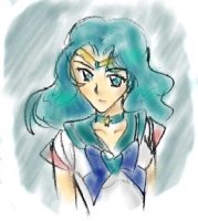 Michiru is another fellow Senshi, she is none other than Sailor Neptune. Michiru is very adept at playing the violin, and plays in concerts from time to time. As Sailor Neptune, she is devoted to protecting Queen Serenity. Her attacks are 'Deep Submerge' and 'Submarine Reflection.' A larger version of the pic to the right is available in the MKR art fan Gallery, under Sakeru the artist. |