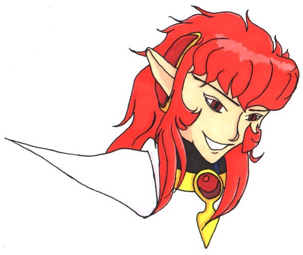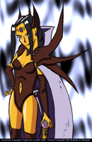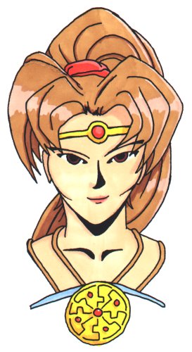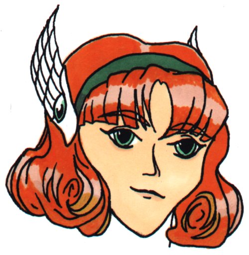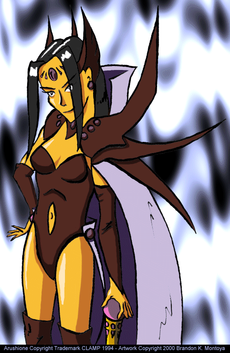 Pencils : Just me Inks : Just me Colors : Just me Medium : Plain paper, Tombow brush pen, computer colors and a slick filter Character : Arushione This was a media experiment that turned out quite nicely. I wish her face turned out better, but all in all it's pretty good. The experiment came in with a Tombow brush marker I used to ink, since her colors are so dark, you can't see the out of control line weights, which is a good thing for me. I used a pool filter for the background. All in all, I'm very proud of the finished product. This is for my Magic Knight Rayearth site, and also for a MKR webring fan banner. Pencils and inks finished in the afternoon of 3/19/2000. Colors finished at 1AM 3/20/2000. Looking