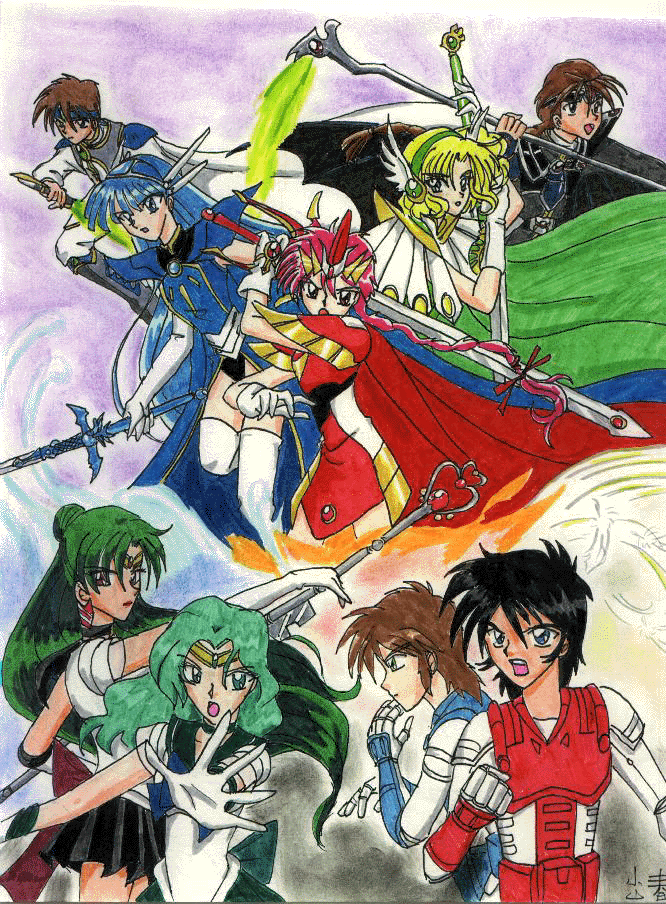Pencils : Sakeru Characters : MKR, Yoroiden Samurai Troopers, Sailor Moon & Gundam Wing. Sakeru did a cover for her fan comic Raging Siege. Completed sometime in 1998 MKR Webmasters - This image is my copyrighted material, you may not place this image anywhere without my explicit permission. If you'd like to display this piece please ask. |