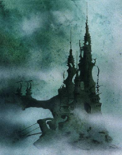 The Twilight Road is faint here -- a thin, wan mockery of a trodway which can hardly be said to lead to the gatehouse, so difficult is it to follow. The foolhardy, persistent or unfortunate who make it this far receive a cold welcome from mute ogre sentinels and are bid wait while a message is sent to the lord of the fortress. Those whom he welcomes are ushered inside. Those whom he does not must flee quickly or be subject to the ogre guardsmen's sense of sport. The fortress comprises an ancient wall of cyclopean, time-gnawed stone surrounding an unpaved yard of stinking black mud. Thin grey wreaths of smoke, made acrid by the dried dung which fuels cheerless cook-fires, rise from squalid huts of wattle and thatch where the lord's thralls eke out a wretched life no better than that of their sickly beasts. Amidmost a twisted narrow keep of leprous white stone rises from a high, weedy mound. The sharp pinnacle of its highest tower stabs at the overhanging clouds, and its bulging lower walls are stained where its drains and gutters spill into the fetid moat below. Within, Caer Poenedigaeth is scarcely more hospitable than its environs or its gatekeepers. The walls are hewn from some waxy-looking stone, seamed with veins that pulse faintly with unwholesome light where they floresce under the disquieting glow of the Balefire pit's black flames. The only other illumination is that which is permitted by the hall's tall, narrow windows which look out through thick, yellowish panes onto the cheerless landscape beyond, as often as not obscured by torrential rain. Around the balefire's sunken hearth and in conversational pairs by the windows are a few chairs richly upholstered in leather. These and a few low tables are the only furnishings. The sole ornament in the hall is a banner of House Ailil which hangs opposite the main entrance. A stair, its balustrade supported by grotesques of carven stone, ascends to a narrow gallery which gives access to those few spartan rooms that Lord Clay alots to his guests. Other doors lead from the hall into the spires and dungeons of Caer Poenedigaeth, but they are locked, guadred, and Weaver-Warded against intrusion.
