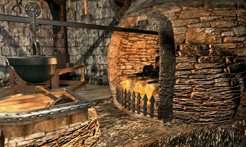 While the stithy forges are not fed with balefire, they are more than capable of crafting fine armor, weapons and tools. In addition to metalwork, the stithy also houses facilities for crafting glass, as well as kilns for firing clay. The anvil itself is a Treasure, which toughens any item forged upon it, as per the secret nocker Art of Infusion. Blades of glass can be hammered to be as resiliant as steel upon its surface.
