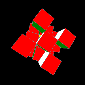 This is a non-interactive demonstration program. It features a set of fourteen (14) spinning cubes. This program is influenced by the famous Rubik's cube toy combined with my own personal interest in computer 3D animation and graphics. Click here to download cube10.zip which runs on Windows 95/98/NT only.