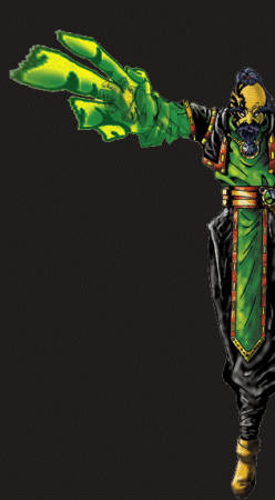 Found as a child with no memory but with great magical potential, little by little, as he aged, memories of great atrocities surfaced, images of spells unheard of, of horrors un-imagined. E�nal began to age rapidly, become more powerful, his appearance hardened, the living tattoo on his face shifting, spreading. His arm took on a reptilian likeness... his hatred of everything living grew, he lived for E�nal and power... that was all.... his current where-abouts are unknown. |