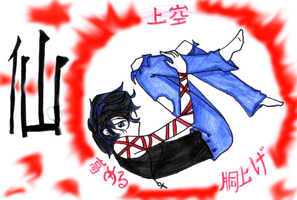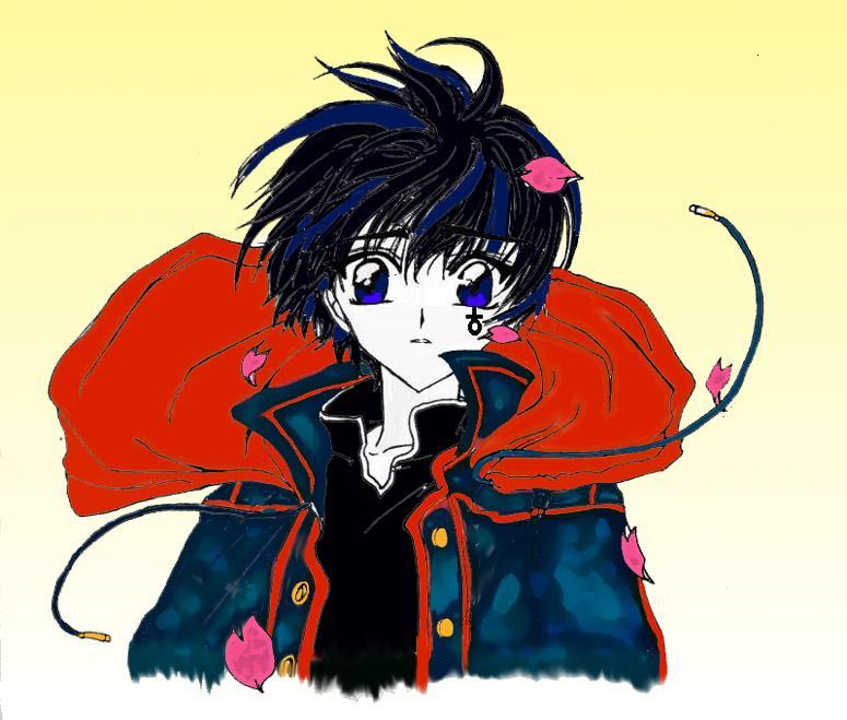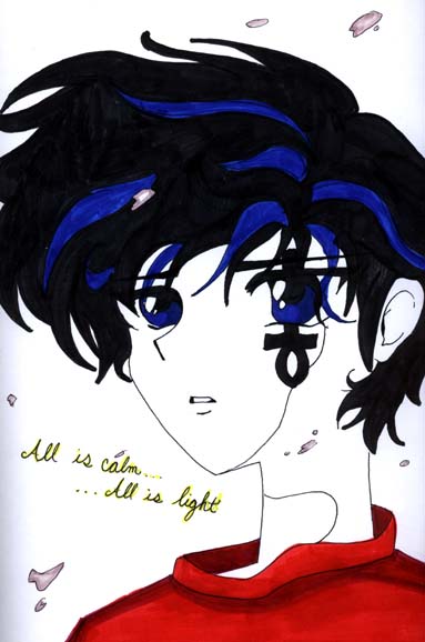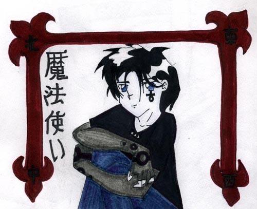 An eight year old boy, crafted to carry all the features of his father. Porcelain skin covers the svelte muscle of his lean body, marred by three tattoos. A golden dragon curls over the length of his back the spell of Shussan cast upon it, giving it life when called upon. The second, a silver and black ahnk, hangs upside down from his left shoulder dripping blood. Another ahnk has been placed, inverted and below his right eye. Dressed in a black short sleeved shirt, Jeans hang low on his hips. He's often seen barefoot with gold rings upon his toes and fingers. His left brow is pierced with a ring, his tongue a barbell, and his cartilage with a small Chaos Star. A mop of prismatic sable hair sits ontop his head, carefully maintained and kept to look wild and uncontrolled streaked with strands of darker midnight. Be wary of his magic but beware his tongue.  Mahoutsukai.