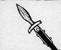 fighting weapon of knight was a tempered blade of steel that ranged from two and a half to four feet in length. Blessed by the priest, the sword was usually a knight's favorite weapon. He spoke of it almost as affectionately as if it had been a brother in arms. "My own good sword," he called it. He even gave it a name. Charlemagne's sword was Joyosa; Roland's was Durindana; Arthur's was Excalibur. The Cid's favorite sword, Tizona, was buried with him. The sword was more than a weapon, for blade and hilt formed the sacred sign of the cross, and many a good knight and true has kissed it fervently and murmured his last prayer as he lay dying on the field of battle. The most common sword was the broadsword. This two-edged weapon was 30" to 42" in length, but only weighed 3 to 4 pounds. Thus a knight could wield it all day in battle by it's lightness, but give crushing blows with it's rarely sharpened edge. A larger sword was the bastard sword. This versitile 44" to 50" weapon was made to be used two-handed, but had a short enough handle to be used one-handed by a knight on horseback. In contrast, the claymore, a Scottish sword also known as the two-handed or great sword, was 50" to 72" long (that's up to six feet!). 18" to 21" of the sword was made of the handle alone. |