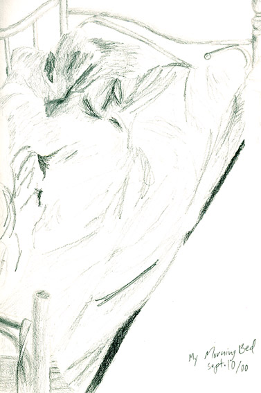(Yes, I know he has no face. He didn't stay asleep long enough to draw the face.) |