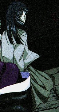 Miyu's secret is a terrible one: the Shinma were released by her fault, and her parents were frozen in time as a result. So long ago that the exact amount of time has slipped her mind, Miyu was just a normal, thirteen-year old girl. One night, as she stood at the edge of the sea, gazing out at the alluring waves, a man floated across the water toward her. He is entirely in color, while she is in black and white. Her previously reddish eyes are black. He whispers: "Do not be afraid." Miyu watches him come, uncertain. The man looks at her and repeats: "Do not be afraid." He puts a sharp nail to her throat and sighs. He explains to her that he is sorry to have to do this; that it is not her fault, but that she cannot be allowed to awaken. Unfortunately, the man waits too long. He mentions the word "blood", and Miyu starts from the trance she had fallen into. She gazes at him as the man, unaware of the change, reaches out to caress her cheek. She hears the pounding of blood in his body, sees the veins throb in his neck. The scene flashes to the man, who looks sad. He reaches out to kill her, but the scene goes back to Miyu, who's eyes are now a brilliant gold. She reaches out and takes the man's head in her hands. He looks frightened. She reaches over and bites his neck soundlessly. He is stunned. A trickle of blood courses down his neck.