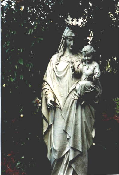 A statue of the Madonna and child found in the garden of Our Mother of Perpetual Help Chapel and Orphanage, a property owned by the writer Ann Rice in New Orleans, Louisiana.