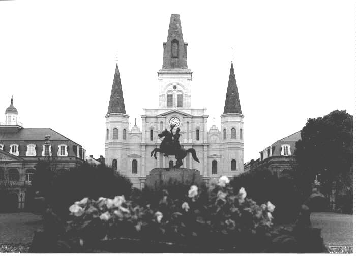 View of Jackson Square and St. Louis Cathedral, New Orleans, Louisiana.