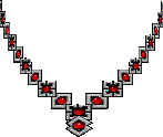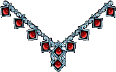 tiny sereem diamonds from Schendi with 3 opals wrapped in gold and 3 rubies drip down to accent the ladies clevage 5 gold tarsk bits for bana 1 silver tarsk bit for the bina |