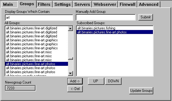 Note that you can move a particular newsgroup up and down the list. This determines the order that Newsbin will access each group.