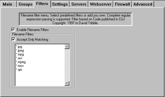 - Check this if you want to restrict files downloaded to those matching the following list.