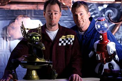 Back in the early 90`s/late 80`s Joel Hodgonson created MST3K, a show in which a man in a red jumpsuit makes fun of movies in outer space with two puppets. Thats right folks. A man in a jump suit with two puppets. I was 4 at that point in time when my father brang home a tape with that description. I thought it was so stupid that it was funny. On the tape it said that it was on Comedy Central, which are stupid cable operator didn`t carry. Damn. But then years later it did. Now at that point I was 8, and Dad was still bringing home these odd tapes with a man in a jumpsuit talking to two hand puppets. heh-heh-heh. I stayed up `till one AM watching that show while dad taped it after that.