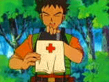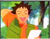 How he meet Ash and Misty: he was gym leader at Pewter city gym, he had no parents and was raising 10 little brothers and sisters. His father showed up and took responsibility for the other kids, and let him go on a Pokemon journey. Ash let him join up with them.