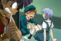 Cinco de las imagenes que he mostrado de Evangelion fueron tomadas de la pagina de Marco A. si les interesan mas imagenes por favor visiten su Home page: http://www.acmecity.com/music/techno/194/index.html