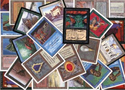 Comentario: El I Torneo de Magic se celebraba (bueno, la verdad es que se han celebrado ya muchos, pero nunca organizados) con muchas ganas entre los jóvenes que a este juego le dedican tiempo y dinero. Se vio a muchos jugadores "puliendo" sus barajas durante la última semana, con nuevas ideas, combos, y demás, y nadie podía definir un claro favorito para ganarlo, aunque varios jugadores habían destacado en lo que se veía. Rodrigo había dado más de una sorpresa con su baraja cargada de Necropotencia, Torre de Marfil, Mishra's Factory y los típicos Caballeros Negros, Contagios, etc. Una monocolor negra bastante letal. Xan ya era conocido por su implacable Land Equilibrium - Armagedón - Jade Statue - hasta luego chaval, Joserra con su Azul - Roja (bastante rara y que resultó muy mala, por cierto: nos gustaba más la monocolor roja), Javier Rodríguez con su Bicho - Armagedón, y varios monocolores rojos (Relámpago, Incinerar, Rayo, con tanto daño directo barato es normal), a cargo de Pradera y Néstor (Ñako también, aunque combinado con Verde). Adrián Olmedo tenía una monocolor blanca, aunque algo coja (las Serra la hacía lenta, y sobraron los Armagedones). A la postre ganaría un implacable Carlos Folgado (cosas de la vida, pues no tenía ni baraja en un principio) con una baraja que le dejó Rodrigo (3er clasificado), monocolor blanca, con unos tintes propios (gracias, Ramón, por el anticolor, impagable), plagada de Caballeros de todos los tipos, Leones, Paladín en -Vec, etc. (ninguna criatura costaba más de 3 manas), Kjeldoran Outpost, Humildad, y Cruzadas.