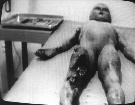 The following is a report by Cynthia Hind in UFO Afrinews No. 13 I am sure that every UFO Journal or magazine will be making some commentary on this film. But before you authoritatively shout 'hoax.' etc..., some facts came to light at the recent BUFORA Conference in Sheffield, York 19/08/95 of which people should be aware. a) The title 'The Roswell Incident' is a misnomer. Ray Santilli told the audience at Sheffield that the body was only 2-3 hours old; that it was filmed on June 1st, 1947. (This could not possibly be from the Roswell crash of early JULY 1947). b) The film was poorly produced. There were several moments lost while it swivelled up and down; where one could not see anything. Then, when it was finally focused, the body of the surgeon often obscured a better view, with the photographer obviously doing his best to obtain a good picture. If the film was hoaxed, certainly some of these shenanigans would be used, but not to the extent they were (if I have the time, I will check how many seconds were lost - certainly more than was needed to convince an audience that the film was authentic). c) I cannot understand why the two surgeons the nurse taking the notes, and the photographer, should all have to be covered up like astronauts ascending into the unknown. The man at the window observing from outside the autopsy room, wore only a cap and a partial face mask. The photographer confirmed that he too had to wear the total cover-up, hence the difficulty in filming. Later, he decided, without permission, to discard the head covering and filmed Bodies 1 and 3 without the total cover-up and these were the films taken away by the Army Air Force. He was left with the remaining 14 x 3 minute reels of 'poor' film which he wanted to try and enhance and which the military never collected despite several reminders from him. d) The cord on the telephone, which was claimed as anachronism (not available in 1947), was actually first produced in 1937! e) One other alternative was that the body might be an example of Turners Syndrome. Turner, however, established his thesis on these anomalies in 1938, so why should an autopsy in 1947 (the established date of the film) be treated with such caution that the surgeons had to wear complete overalls? My personal feeling