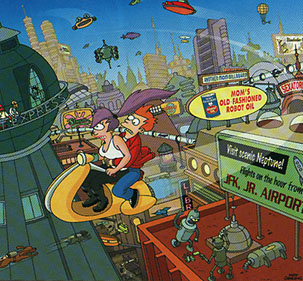 Futurama, the new animation from the maker of The Simpsons, Matt Groening. At the moment you can see the second series on Sky 1. If you scroll to the bottom you can download sounds, screensavers, icon and wallpapers of the characters.