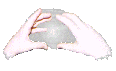 Now move your hands, bringing them closer together and farther apart without letting them touch. You will notice a slight heat, tingling or almost a sensation of pressure as something seems to be suspended between your hands. As you move them in different ways , always keeping the palms facing each other and the fingers slightly curved and never allowing the distance between them to exceed three inches, you will feel differences in the way the energy flows. And soon you will see that there is a indistinct blob of whitish energy like a ball of very diffuse fog. You will feel this ball change shape like dough, tingling as it does. This is a concentrated form of the etheric energy which surrounds your whole body. As you train your eye to see it and repeat this exercise regularly you will more and more easily bring it into being and learn to see this energy around yourself and others.