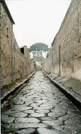 The above picture is a picture of a road through Pompeii. This, as you can see, has been excavated. The explosion of of the nearby volcano covered it in ash in the year 79 B.C.E.