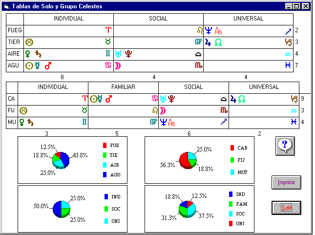 La carta puede dibujar los aspectos a las casas, y 28 variedades de aspectos, incluyendo todos aquellos que son multiplos de 15 grados.