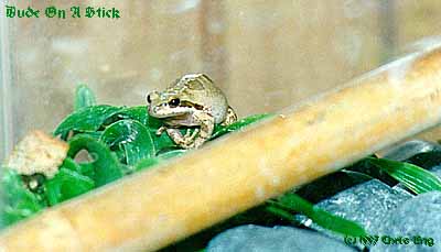 Updated News - March '97: LD2 seems to have found a new friend. For the past month, he has been communicating with another tree-frog outside his captor's abode. This frog has just been