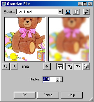 Step 6: Go to Adjust/Blur/Gaussian Blur and apply a radius of 3.01 as shown in Screen Shot 5: Radius: 3.01 |