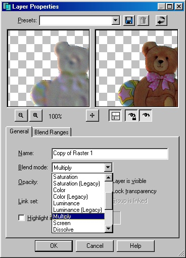 Step 10: Go to Layers-Merge-Merge All (Flatten) Step 11: (Optional, this step only applies if you are going to copy your finished graphic onto a seamless background or colored background of your choosing. You may also Export as picture tube). Click Ctrl + C to copy, then paste as a new selection or paste as a new layer onto your seamless background image giving you a result similar to this: If your image is too dark, repeat Step 9 replacing the 'Multiply' with 'Lighten' and Opacity from 100 to 80 or lower. |