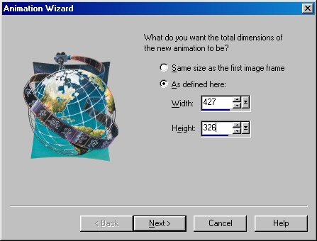 Step 5: Write down the dimensions of your Main Image (Height and Width) Go to File/Launch Animation Shop File/Animation Wizard Follow the below steps: Click on the picture to enlarge |