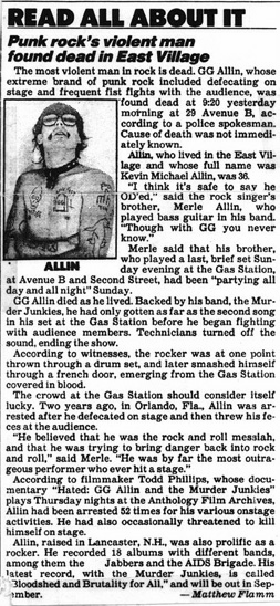 is still spreading. Write "G.G. ALLIN" on all your dollar bills.