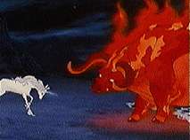 They soon discover many secrects in the castle, and find the Red Bull along with what had happened to all of the other unicorns. Schmendrick turns Amaltha back into a unicorn, then she faces off against the Red Bull in a fight that will determine the fate of the unicorns.