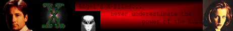 | Welcome to my site completely dedicated to the X-Files. I'd just like to thank Chris Carter, 20th Century FOX, David Duchovny, Gillian Anderson, the rest of the cast and crew, the writers, and 1013 Productions for making the X-Files work. ThanX, and most of all, Congrats! You guys have done an X-cellent job! |