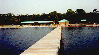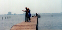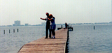 Yours truly and my wife, Linda, on the pier at Shoreline Park, with Pensacola Beach in the distance. |