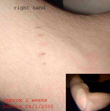 On the morning of December 2, 2004, this subject also awoke to find a series of strange marks on his arm.