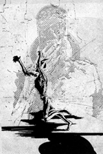 Fred Greenberg did this double exposure of two of his drawing using a stat camera. Rick Grimes wrote a story for "Parade of Gore" to go with the product of ink and camera.