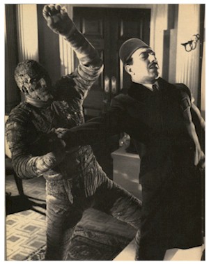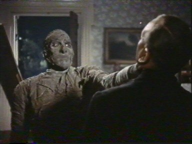 Later John Banning explains to Joseph Whemple how the High Priest Kharis loved Ananka, and attempted to revive her when she died with the words from the Scroll of Life. He was caught, and for this sacrilege his tongue was cut out and he was buried alive.Kharis breaks into Banning's house, kills Whemple and leaves. John discovers that his wife Isobel bears a striking resemblance to Ananka. When Kharis returns to Banning's house, Isobel commands him to leave. A guard of armed villagers and policeman is placed on Banning's house, but Kharis and Mehemet Bey still manage to enter. The Egyptian order Kharis to kill Isobel but he cannot, and kills Mehemet Bey instead.