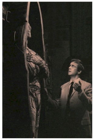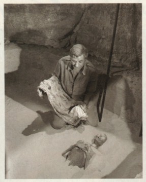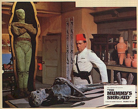 He arrives at the dig, insisting that they excavate, despite the warnings of the fanatical Hasmid Ali, the guardian of the tomb, who says that all who enter will die. The mummy and its shroud, bearing a coded inscription wich Claire, the superstitious language expert will not decypher, are put on display along with the Mummy of Prem, the Pharaoh's faithful slave.