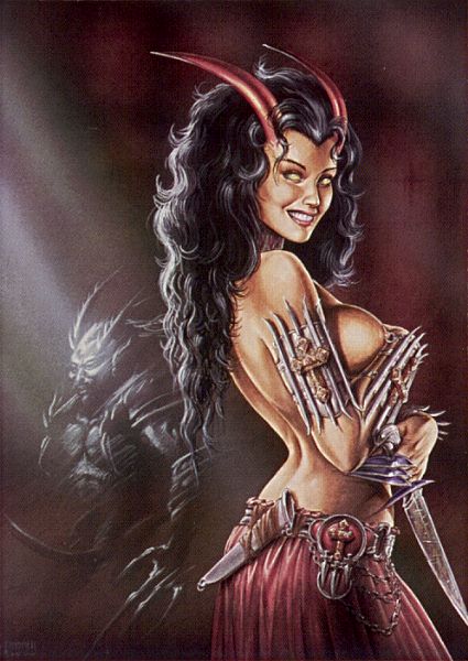 hmm...I wonder if DA meant what she said about waiting for me to return?.....ohh well..lets hope not..here goes nuthin....*appears inside hell* hmm...no DA yet...maybe..just maybe...*clears throat* umm...Dracos, hunny...Where the HELL is my damn bat!!!!!!!!!!!!!!!11.....If you hurt my bat i swear i will severly harm you....you will loose ALL appendages...i swear it...DA, dear, i didnt hurt the little bat, he was helping me design a new dress for you..one made of black satin and blood red crimson...so, if u insist on the whole appendages thing...then go ahead...you just wont get the gift...ohh..sorry deat..you know how much my bats mean to me though....just dont scare me like that again...well, i see u made me a dtess of my two favorite materials..its beautifal baby...but anyways, if u ever hurt my bats....i will