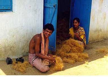 skoro všichni pracují, z juty lana, z bavlny nitě, látky tkalcovské stavy, oblečení tašky překupníci bazar.