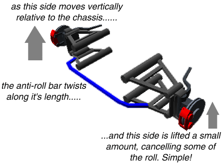 bump on one wheel is partially soaked up by the twisting action of the