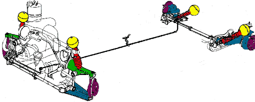connected to all four suspension units (which are usually 'double-A' arm